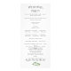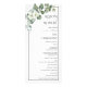 Cette cérémonie de mariages floraux BUDGET et le programme de la réception présentent une branche d'eucalyptus ornée de fleurs blanches et de feuilles verts sauge dans le coin supérieur gauche. Les noms du couple sont élégamment affichés dans des lettres décoratives, et une fine bordure noire encadre l'ensemble du design.