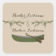 Un autocollant de mariage en plein air, illustrant deux branches d'arbres à feuillage persistant et un canot vert. Personnalisez le texte avec vos noms.
