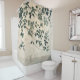 Ce magnifique rideau de douche biophile aux couleurs douces présente des branches feuillues accrochées à un arrière - plan neutre.