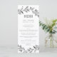 Cette carte de menu en argent aux branches courbées est parfaite pour un mariage moderne. Le design classique comprend deux branches métalliques en faux argent en feuille arrangées pour composer une élégante couronne feuillue. Ce menu peut être utilisé pour une réception de mariage, un dîner de répétition ou tout événement. Remarque : Ce design ne présente pas de véritable feuille d'argent. C'est un graphisme de haute qualité fait pour ressembler à du papier argenté.
