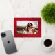 Diffusez la joie des fêtes avec cette carte de vœux de Noël traditionnelle et élégante. La disposition horizontale présente une grande image époustouflante, rehaussée par de superbes surimpressions de branches de pin en feuille d'or radiante. Le fond rouge donne le ton festif, tandis que les branches de pin tonales élégantes et les accents de points ajoutent de la sophistication. Au verso, profitez d'une disposition d'images à deux cases avec de charmantes branches de pin et des points blancs. Personnalisez la couleur de fond et le texte pour le rendre unique. Célébrez la saison avec cette carte personnalisable qui respire la joie !