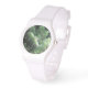 Montre des branches d'épinette avec une photo de Leslie Harlow.