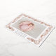Les annonces de naissance élégantes présentent votre photo de nouveau-né horizontale ou paysagère préférée enveloppée de branches botaniques et de feuillage en feuille d'or. Le nom du bébé, les statistiques de naissance et la signature de votre famille apparaissent en dessous. Ajoutez six photos supplémentaires au dos dans une mise en page collage ou supprimez pour laisser vide.