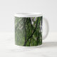Cette énorme tasse présente une photo prise à l'intérieur d'une forêt dense. La photographie montre la vue du ciel à travers un réseau enchevêtré et beau de branches d'arbres et de feuilles verts luxuriants.