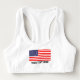 Soutien-gorge de sport drapeau patriotique américain pour l'équipe USA. Vêtements actifs pour femmes et filles. Conception personnalisée pour le fitness, la course, l'entraînement, la gym, l'entraînement, le yoga, le marathon, le triathlon, etc. Ajoutez votre propre motivation personnalisée en disant, nom, citation drôle, monogramme etc. Étoiles et rayures US. Drapeau rouge blanc et bleu de l'Amérique. Aussi agréable pour 4 juillet / jour d'indépendance. Disponible en différentes tailles, y compris extra grand pour les seins plus gros. Idée cadeau pour entraîneur personnel, entraîneur, coureur, danseuse, fitgirl, femme, fille, soeur, petite amie, etc.