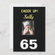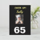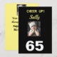 Célébrez son 65e anniversaire avec une carte "Cheer Up!". Elle sourit à la fille grincheuse et apprécie le verset heureux au dos de la carte. Les couleurs noir et jaune pop avec le style à la mode. Le design moderne exprime le sentiment joyeux d'un anniversaire marquant pour une femme.