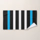 Bandes blanches et noires motif avec accents bleus.