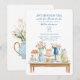 This elegant bridal shower tea party invitation features soft blue typography and charming watercolor illustrations of teapots, cakes, macarons, florals, and vintage teacups. Perfect for an afternoon tea or high tea bridal shower, this classic and feminine design sets the tone for a refined celebration. Ideal for garden parties, tea rooms, and traditional bridal showers, with space to customize all event details.