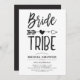 Cartes d'invitation pour enterrement de vie de jeune fille personnalisées pour votre tribu de mariée spéciale. Il présente un thème classique noir et blanc avec les mots bride tribe écrits en police de style écriture manuscrite. Entre les deux mots se trouve une flèche tribale perçant un cœur.