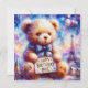Un mignon ours en peluche, célébrant l'anniversaire de Brie. Les salutations sur la carte sont "Joyeux Brie d'anniversaire". Sur le dos de la carte se trouve une petite version de l'image avant, et beaucoup de place pour écrire un message. Fabriqué avec l'aide d'AI Bing.