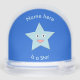This awesome snow globe features a graphic image of a blue five pointed star with huge eyes and a big smile.