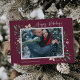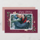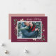 Elégant et festif carte photo de vacances encadre votre image horizontale ou paysagère préférée avec une subtile bordure de pont et feuillage vert et blanc de vacances en regardant aux coins. "Happy Holidays" apparaît en haut à droite dans le script de calligraphie, avec vos noms et l'année en bas à gauche.