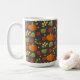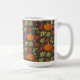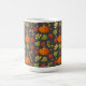 Toutes les belles couleurs d'automne sur une tasse. Oranges vives, rouges et jaunes. Citrouilles, tombent des feuilles et des glands sur un arrière - plan au charbon de bois foncé. Parfait pour égayer votre cuisine ou votre dortoir et pour votre café citrouille épice ! Bonne Chute !