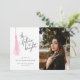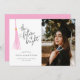 Carte photo moderne et fantaisiste de graduation avec illustration d'un moule rose clair avec un texte de typographie écrit à la main qui dit "l'avenir est brillant."