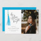 Carte photo moderne et fantaisiste de graduation avec illustration d'un moule bleu ciel avec un texte de typographie écrit à la main qui dit "l'avenir est brillant."