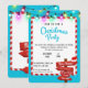 Il s'agit d'une invitation de Noël lumineuse et joyeuse. L'arrière - plan est d'un bleu vif, et au sommet, des lumières de Noël colorées sont suspendues, ajoutant une lueur festive. La bordure de l'invitation a des rayures de sucre de canne rouge et blanc, renforçant l'esprit de vacances. Au centre, de grandes lettres bleues disent, "Rejoignez-nous pour une fête de Noël", indiquant clairement qu'il s'agit d'une invitation à un rassemblement amusant et saisonnier. Ci-dessous, un message d'accueil : "Rejoignez-nous pour une soirée festive et festive remplie de gâteries de vacances, grande compagnie, et bonne humeur! Nous sommes impatients de vous voir !" Les détails de l'événement sont bien définis, avec la fête se déroulant à la date et à l'endroit choisis. En bas, il encourage les clients à RSVP par date choisie. En bas à droite, un panneau décoratif avec un texte comme "Joyeux Noël", "Meilleurs Voeux" et "Bonne Année", orné d'un chapeau de Père Noël, ajoute du charme à la décoration.