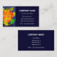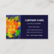 Un carte de visite accrocheur avec un design abstrait orange, jaune et vert sur un arrière - plan bleu foncé, avec lettrage blanc. Prêt pour vous à customiser avec vos propres détails.