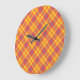 Une horloge ronde chic, avec un motif Plaid en rouge vif, jaune et bleu. Faisant partie de la collection Posh & Painterly 'Rangoli', ce motif carrelé peut être ajusté pour s'adapter à n'importe quelle horloge.