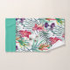 Motif coloré dans un thème tropical, ce design est composé d'un motif de feuilles de palmiers et de feuillage tropical avec orchidées, lys et autres fleurs exotiques dans rouge vif, rose, violet, blanc et orange. Bordée d'une bande d'aqua massif, cette décoration évoque l'aura du style de vie insulaire.