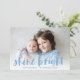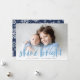 Festive Hanoukka carte photo présente votre photo horizontale ou paysagère préférée en fond saigné, avec "brillant brillant" recouvert de la typographie de brosse en lettres bleues. Personnalisez l'avant de la carte avec vos noms et un court message de vacances, et ajoutez trois photos supplémentaires à l'arrière dans une mise en page collage sur un arrière - plan à motif de flocon bleu marine, ainsi qu'un message personnel personnalisé. Pour un dossier vide, il suffit de supprimer le calque mat modèle photo et blanc.