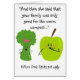 *Copyright Night Owl's Menagerie, 2014 Happy Jour des terres! Célébrez avec cette carte humoristique représentant un brocoli et une pomme qui dégagent la saleté. Le combat alimentaire ultime. De mignons dessins humoristiques pour les gens qui aiment la terre dans votre vie. Art original par Night Owl's Menagerie, 2010.