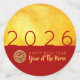 Design moderne avec papier texturé doré (image imprimée) avec des souhaits chinois dorés verticaux + grand 2026 en rouge + petit papier du Cheval découpé avec des textes jaunes BONNE ANNÉE et année du Cheval sur un arrière - plan rouge. Conception sur papier confetti. Vous pouvez facilement changer d'année en cliquant sur le bouton personnaliser. Carte de voeux, carte postale de vacances et plus bientôt... Parfait pour un Nouvel An chinois intemporel et moderne du Cheval 2026.