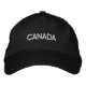 Un Casquette brodé de base réglable en noir avec du texte blanc brodé au Canada.