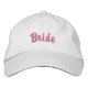 Les mariées ont brodé le casquette avec le texte cousu 'Bride'. Texte, police et couleurs personnalisables. Parfait pour fiançailles, douche nuptiale, jour de mariage ou lune de miel. Trois styles casquette et une grande variété de couleurs casquettes.