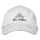 Montré en blanc avec une broderie brodée texte couleur violet profond et iris sauvage [lavande] couronne. Ce casquette n'a le texte avant affiché qu'avec votre titre. Revers réglable. Customisez cet article et n'oubliez pas de choisir la couleur de votre casquette.