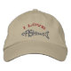 Casquette de pêche personnalisable - Le mot "pêche" forme le corps d'un poisson puis une tête et une queue ont été ajoutés dans ce design unique par Marilyn Straus. Toutes les couleurs de fil peuvent être changées en un jeu de couleurs de votre choix. Le mot "pêche" et être de la même couleur que la tête et la queue ou il peut être différent. Les mots "I love" peuvent aussi être changés ... ou complètement supprimés. De plus, vous pouvez ajouter un nom et/ou la ville natale sur les côtés du casquette.