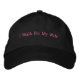 Montrez votre soutien avec ce Casquette de sensibilisation au cancer du sein en noir avec le texte brodé rose : Je marche pour ma femme.