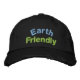 Texte brodé bleu et vert qui dit "Earth Friendly" est présenté sur un casquette de conscience de l'environnement qui fait un grand cadeau et est parfait pour quiconque est conscient des problèmes de l'environnement!