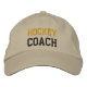 Un casquette d'entraîneur de hockey brodé personnalisable avec du texte d'or et de noir que vous pouvez facilement customiser en lisant "Papa de hockey" ou "entraîneur de football" ou tout ce que vous voulez!