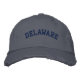 Un Casquette Twill Chino détendu brodé avec le texte (personnalisable) Delaware. Sélectionnez la couleur et le style du casquette et du texte de votre choix.