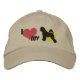 Amusant et amusant j'aime mon portugais Water Dog Pinscher brodé casquette. Ce design est composé d'un grand coeur rouge, d'un empreinte de patte jaune vif et d'une silhouette PWD noire. Parfait pour garder le soleil hors de vos yeux et montrer votre amour pour cette race énergique! D'autres couleurs sont disponibles.