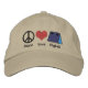 Broderie de Flyball pour les amateurs de sports de chien ! Un symbole de paix, un coeur rouge et une boîte de volley bleu composent ce casquette Peace, Love, and Flyball. Amusez-vous autour de la ville ou à votre prochaine compétition !