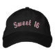 Célébrez votre 16e anniversaire Sweet avec ce mignon casquette brodé qui dit "Sweet 16" en lettres brodées roses sur un casquette noir. Choisissez un style ou une couleur casquette. La lettre peut être customisée.
