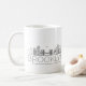Cette tasse présente une illustration stylisée de l'horizon unique de la ville avec son nom en dessous.