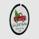 Script de brosse moderne, Aquarelle Vintage Camion rouge avec arbre de Noël, Notre premier ornement de Noël Couple vert Plaid