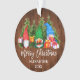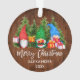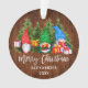 Script moderne de brosse Joyeux Noël. Première aquarelle de Noël de bébé Gnomes avec les présents de Noël et l'ornement des pins. Ajouter un nom. Bois rustique.