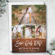 Brosse moderne Script Bois rustique Économisez Notre Date 4 Photo Couple Fiançailles Carte Faire-part