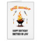Une carte d'anniversaire pour un beau-frère qui adore griller. Un design fumé et alléchant avec un barbecue grill avant et centre, flammes se levant dans l'arrière - plan. "Grill master" met l’accent, comme lui quand il est derrière le grill !