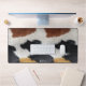 Our new desk mat design features an image of brown, black, and white cowhide texture print.