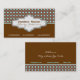 cartes de visite à l'intérieur de pois bleus Brown, avec un motif à pois brun et bleu. La partie inférieure est de couleur chocolat solide. Une bande blanche et bleue séparent les deux parties. Votre entreprise/nom est tapé sur un élégant étiquette damassé aux contours marron et bleu. Design moderne et agréable, avec une touche rétro, qui peut être utilisé pour de nombreux domaines d'affaires tels que les intérieurs, coiffeur, salon de beauté, salon de ongles, cosmétiques, décorateur, thérapeute, artisan, mode, maquillage et plus encore.