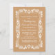 Charmant et simple Elégant Bordure Thanksgiving Dîner Invitation avec une frontière fleurie avec des vignes et des feuilles en blanc et un arrière - plan marron. Invitations amis et la famille sur pour un dîner de moisson avec cette élégante invitation. Facile à customiser, ajoutez simplement les détails de votre partie dans les champs de texte fournis. Cliquez sur "Customiser" pour trouver d'autres options de personnalisation.
