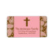 Habille tes invitations de baptême, invitations de communion ou invitations de confirmation avec notre étiquette de adresse cachemire! Cette étiquette d'adresse de retour comporte des bordures latérales en cachemire marron et rose posées sur un arrière - plan rose avec une croix brune. La touche finale parfaite pour vos Invitations religieuses. Les invitations au baptême et à la communion sont disponibles dans notre boutique @ www.celebrateitinvites.com .