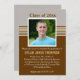 Voici une faire-part de graduation rayée brune, grise, bronzée et verte avec une place pour la photo numérique de votre fils. Vous pouvez ajouter du texte à l'arrière de l'invitation en utilisant le bouton personnaliser, ou vous pouvez m'envoyer un courriel à niteowlstudio@gmail.com avec vos besoins spécifiques.