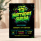 Bruh 13th Birthday Boy Neon Modern Invitation