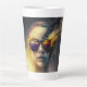 Un tableau surréaliste numérique d'une femme avec des lunettes brûlantes. Latte Mug