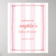 Accueillis avec élégance, ce panneau d'accueil au baby shower blanc, aux rayures pastel bleu doux et à la délicate couronne de jardin fleuri. Parfait pour donner le ton de votre événement, ce panneau magnifiquement conçu ajoute une touche douce et élégante à votre décor de douche. Personnalisé avec le nom de l’invité d’honneur et les détails de l’événement, c’est une façon charmante de saluer les proches et de créer une entrée parfaite. Que ce soit sur un chevalet, encadré ou propulsé sur une table, ce panneau est à la fois décoratif et mémorable, un joli souvenir pour après la célébration. Détails : Disponible en plusieurs tailles Imprimé sur papier d’affiche ou carton mousse de qualité (selon la sélection) Texte entièrement personnalisable Idéal pour les baby showers, fêtes de jardin ou évènements printaniers Ajoutez une touche magique à votre journée spéciale avec ce signe d’accueil floral rose qui est aussi doux que la fête elle-même !